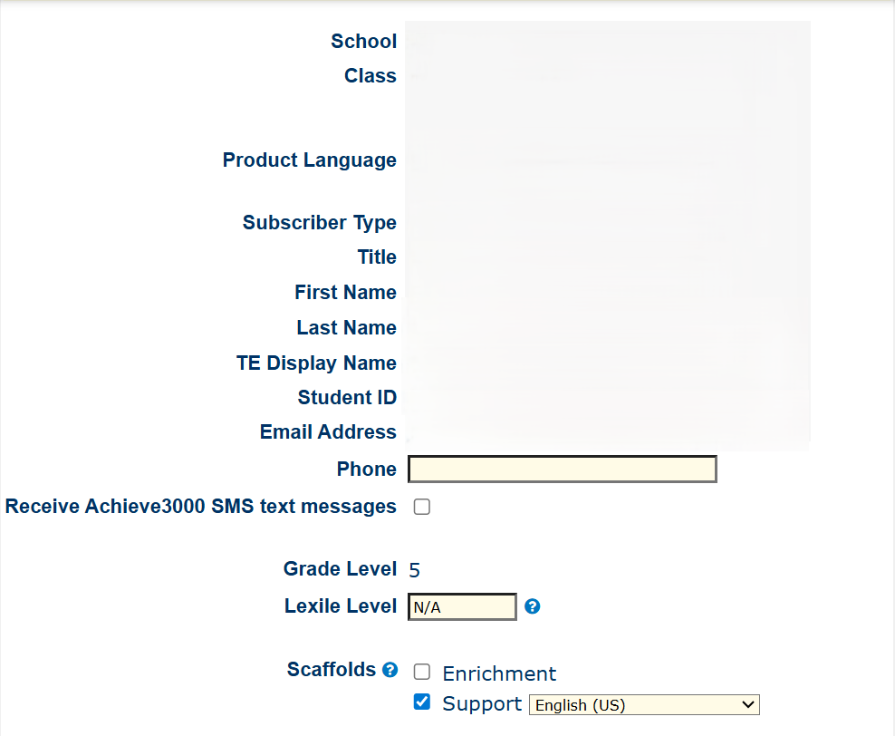 - This will bring you to your user profile, where you can update your phone number, lexile level and scaffolds, and opt in to receive text messages, before clicking “Submit” at the bottom to save your changes.